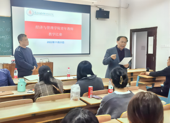 教育是一种情怀,教学是一门艺术,教研是一门修行。为促进青年教师的不断成长,提高青年教师的教学能力和专业水平,营造互相学习,共同进步的教学氛围,yl23455永利官网青年教师教学比赛于2022年11月23日下午14点在教学楼1106多媒体教室拉开帷幕,教学管理课刘雪老师主持,评委由刘骏、陈瑛、熊桃慧、王黄珊、梅龙君组成。