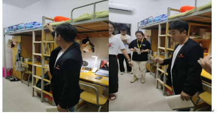 4月19日晚上,yl23455永利官网辅导员冯晓龙带领班级事务中心四名负责人从学生宿舍一栋开始,从卫生、安全等方面检查每个班级推选的优秀宿舍,并提醒学生严禁占用消防通道、严禁使用大功率电器、保持好宿舍卫生、勤倒垃圾、叠好被子。通过走访各班寝室,部分宿舍存在着卫生脏、乱、差等情况,未发现使用大功率电器现象。
