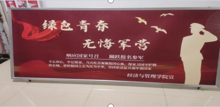 为加大征兵宣传力度,普及征兵政策,强化大学生国防观念,激发参军报国热情,鼓励学生积极应征报名,依据征兵文件相关要求,学院开展了“绿色青春,无悔军营”征兵宣传动员系列活动。