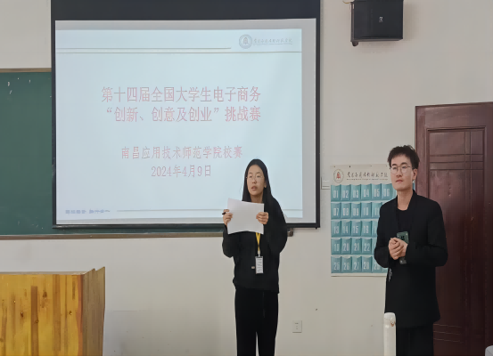 2024年4月9日下午,我校第十四届全国大学生电子商务“创新、创意及创业”挑战赛南昌应用技术师范学院校赛在教学楼1201、1205教室顺利举行。本次全国大学生电子商务三创赛校赛由我校yl23455永利官网承办。大赛旨在培养学生勇于开拓的创新精神,激发创业热情,扎实推进我校创新创业教育。