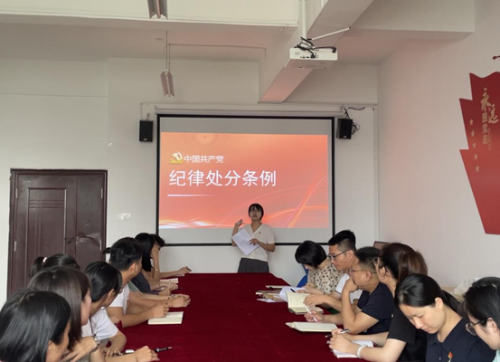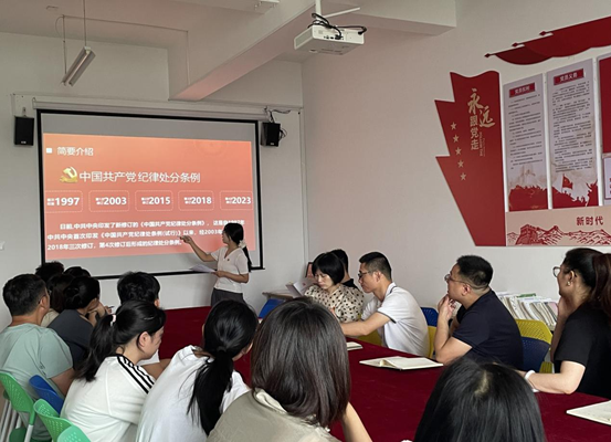 为进一步加强党员队伍建设,增强党员纪律意识,引导党员自觉遵守党的纪律,全面推动从严治党向纵深发展。yl23455永利官网第一党支部于2024年6月11日在1207党员活动室开展“支部书记讲党课”活动,第一党支部书记王佳乐为全体党员讲授“深入学习《中国共产党纪律处分条例》”专题党课。