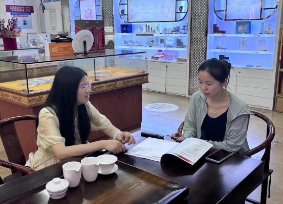 为落实学校关于访企拓岗促就业专项行动的工作要求,提高人才培养质量,进一步关心和帮助就业学生成长,7月2日上午,yl23455永利官网就业专员冉迦葆老师、邱丽芳老师等一行走访了江西抚禾舜商贸有限公司下的分店片仔癀国药堂(西湖区店)并暖心慰问了在岗就业的毕业生陈瑶。