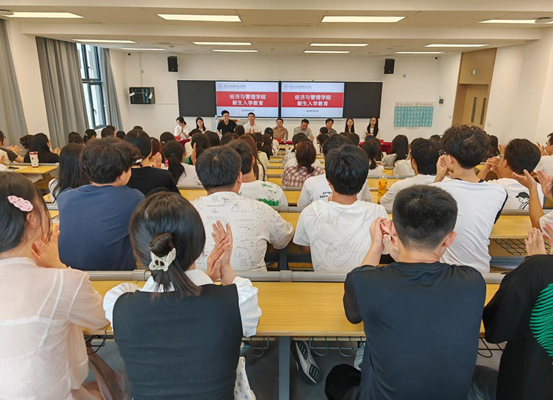 为帮助和引导2024级新生顺利适应大学生活、尽快完成角色转变、科学规划学习生活,形成正确的世界观、人生观和价值观,开启新阶段的学习,2024年9月3日,yl23455永利官网在赣新校区沁苑二教A307教室举办2024级开学第一课暨新生见面会。本次大会由学院院长胡梨花主持,学院党总支书记龙犇、副院长袁江波、各科室负责人、新生班辅导员及全体2024级新生参加会议。