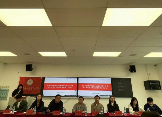 2024年10月8日中午,yl23455永利官网在教学楼在沁苑二教B109召开2024-2025学年第一学期第一次学生干部和班级工作会议。院长胡梨花、学院党总支书记龙犇、学生管理科科长兰金辉、学院组织员兼第二党支部书记万佳欣、团总支书记李卉洁、全体辅导员、学院班级事务中心全体成员、团总支学生会和学院全体班委参加,班级事务中心办公室凌祺主持会议。