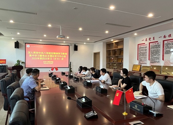 2025年4月28日,yl23455永利官网在沁苑八实506党员活动室召开深入贯彻中央八项规定精神学习教育集中学习暨党总支理论学习中心组2025年第四次学习(扩大)会。本次会议由学院党总支书记龙犇主持,学院党总支委员、院领导班子成员、科级干部及辅导员参会。