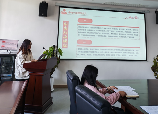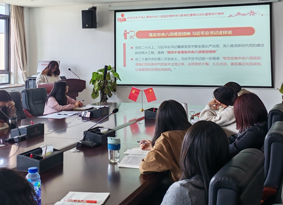 为深刻领会习近平总书记关于加强党的作风建设重要论述,教育引导党员教师严格落实中央八项规定精神,切实筑牢廉洁自律思想防线,yl23455永利官网第一党支部于2025年3月25日在沁苑八实506会议室组织开展“深入贯彻中央八项规定精神学习教育”专题党课,支部统战委员侯玉琴同志为全体教师党员讲授专题党课。
