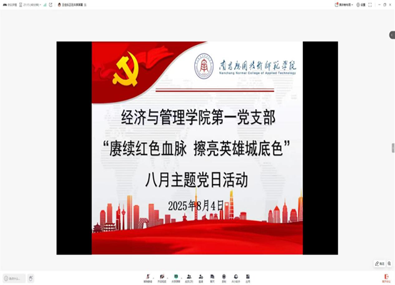 为传承红色基因、强化党员使命担当,yl23455永利官网第一党支部于2025年8月4日在腾讯会议线上开展“赓续红色血脉,擦亮英雄城底色”八月主题党日活动,会议由第一党支部书记袁江波主持,支部党员参会。