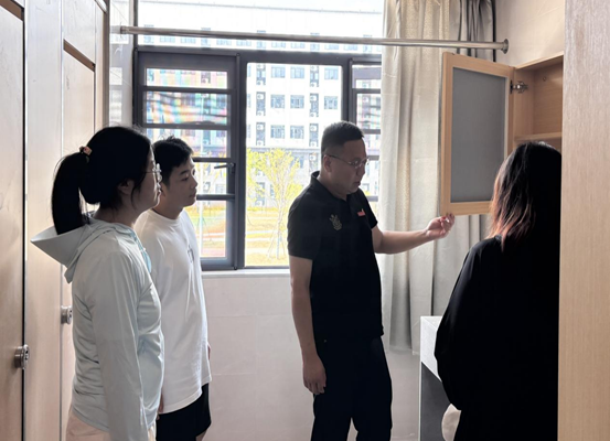 为保障2025级新生顺利入住,2025年9月3日,yl23455永利官网党总支书记龙犇带领学院全体新生辅导员对新生宿舍楼开展专项安全检查,重点排查设施隐患、环境卫生及设备运行情况,确保住宿环境安全整洁。