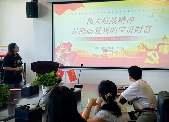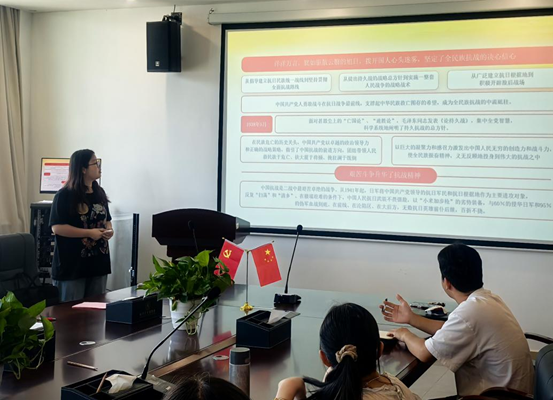 为深入学习贯彻习近平总书记关于弘扬伟大抗战精神的重要论述,激励党员教师在新时代新征程上勇担使命、奋发有为,9月23日下午,yl23455永利官网第一党支部在沁苑八实五楼506党员活动室开展了以“伟大抗战精神是砥砺复兴的宝贵财富”为主题的专题党课学习,本次党课由曾华同志主讲,全体党员参会。
