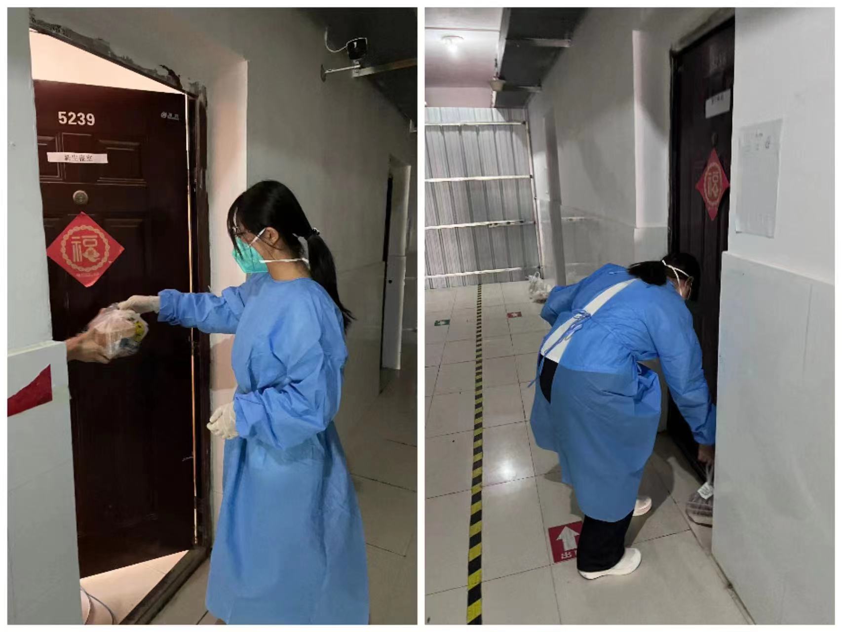 9月4日王佳乐老师和姚琼老师在学校疫情隔离点为学生送餐。