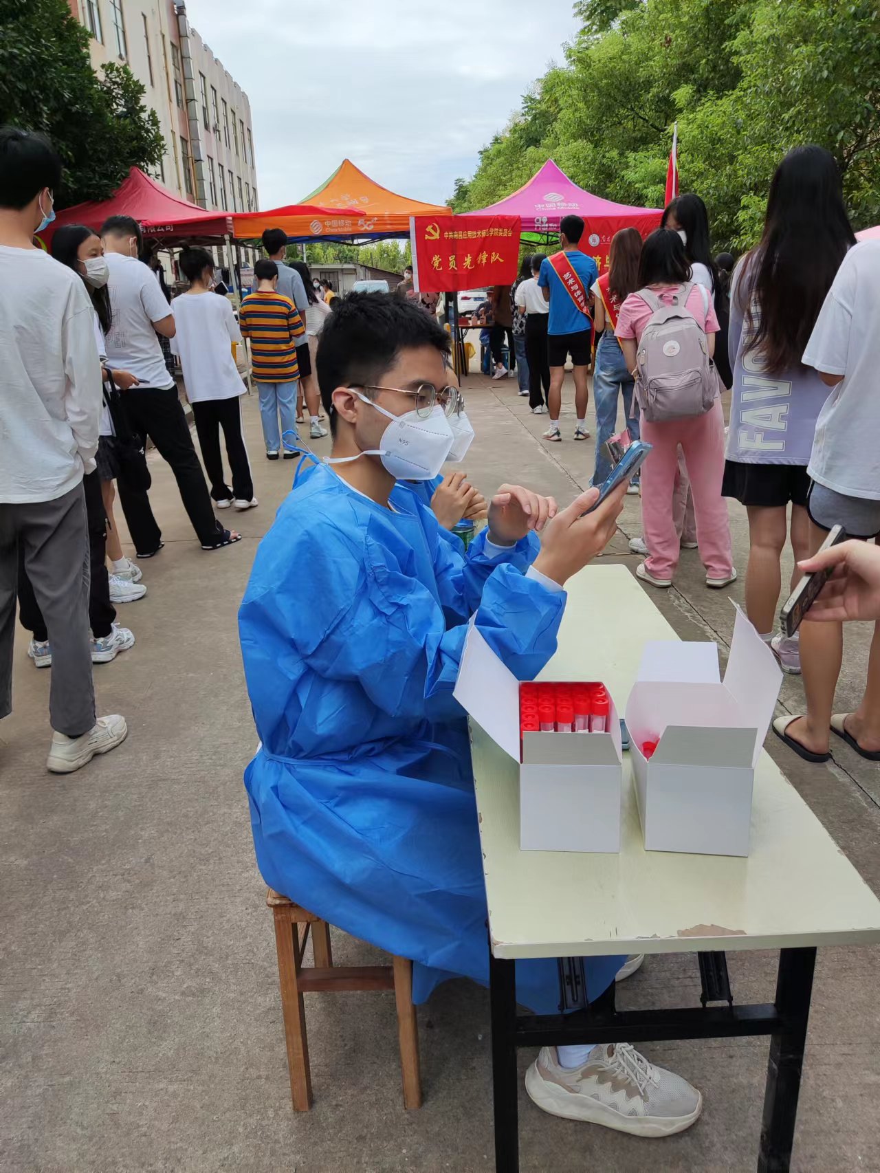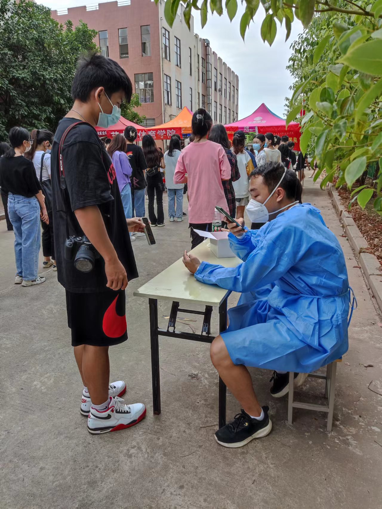 9月4日黄世云老师在核酸检测点为学生扫码。