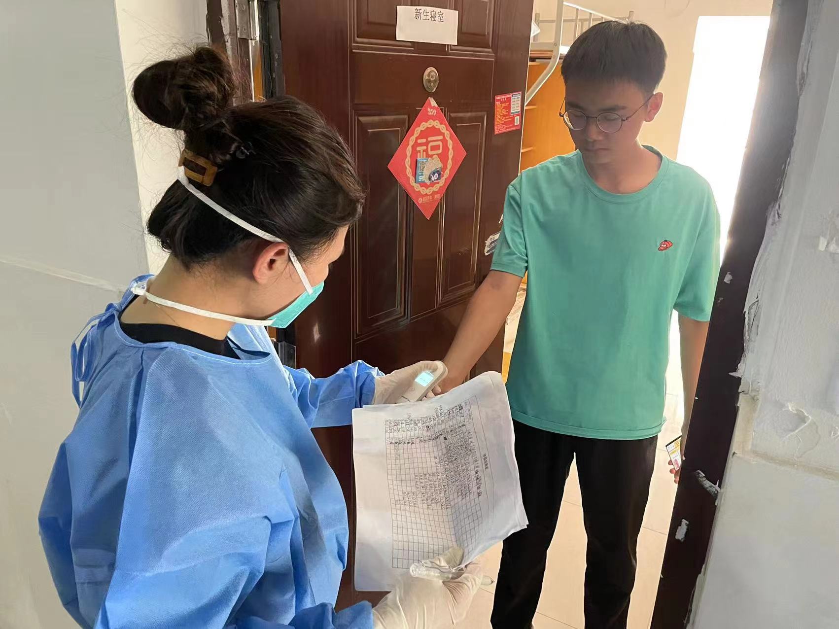9月5日黄思佳老师在学生隔离点为学生测量体温